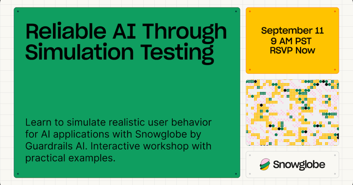 Learn to simulate realistic user behavior for AI applications with Snowglobe by Guardrails AI. An interactive workshop with practical examples.